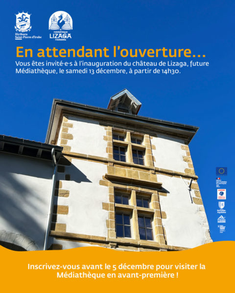 La commune de Saint-Pierre d’Irube / Hiriburu vous invite à l’inauguration du château de Lizaga, future médiathèque, le samedi 13 décembre 2025, à partir de 14h30.